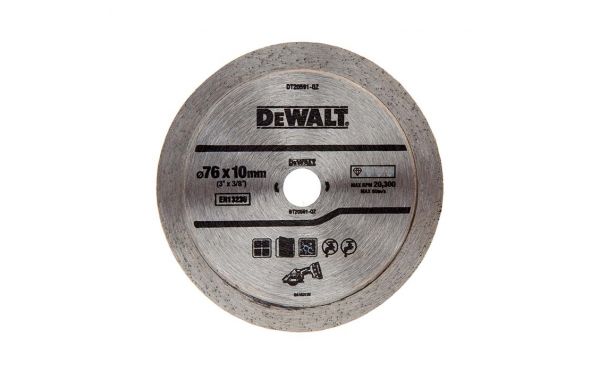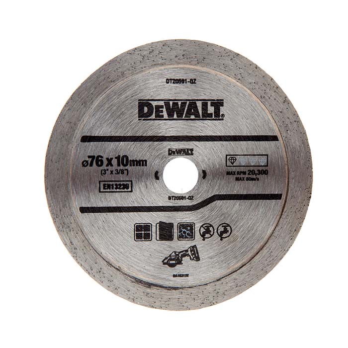 DEWALT - DT20591 Διαμαντόδισκος Υγράς/Ξηρής Κοπής Πλακιδίων 76mm για DCS438. Κατάλληλο για Ξηρή & Υγρή κοπή σε όλους τους τύπους Πλακιδίων & Κεραμικών. Κατάλληλο για κεραμικό πλακίδιο, μάρμαρο, πορσελάνη.