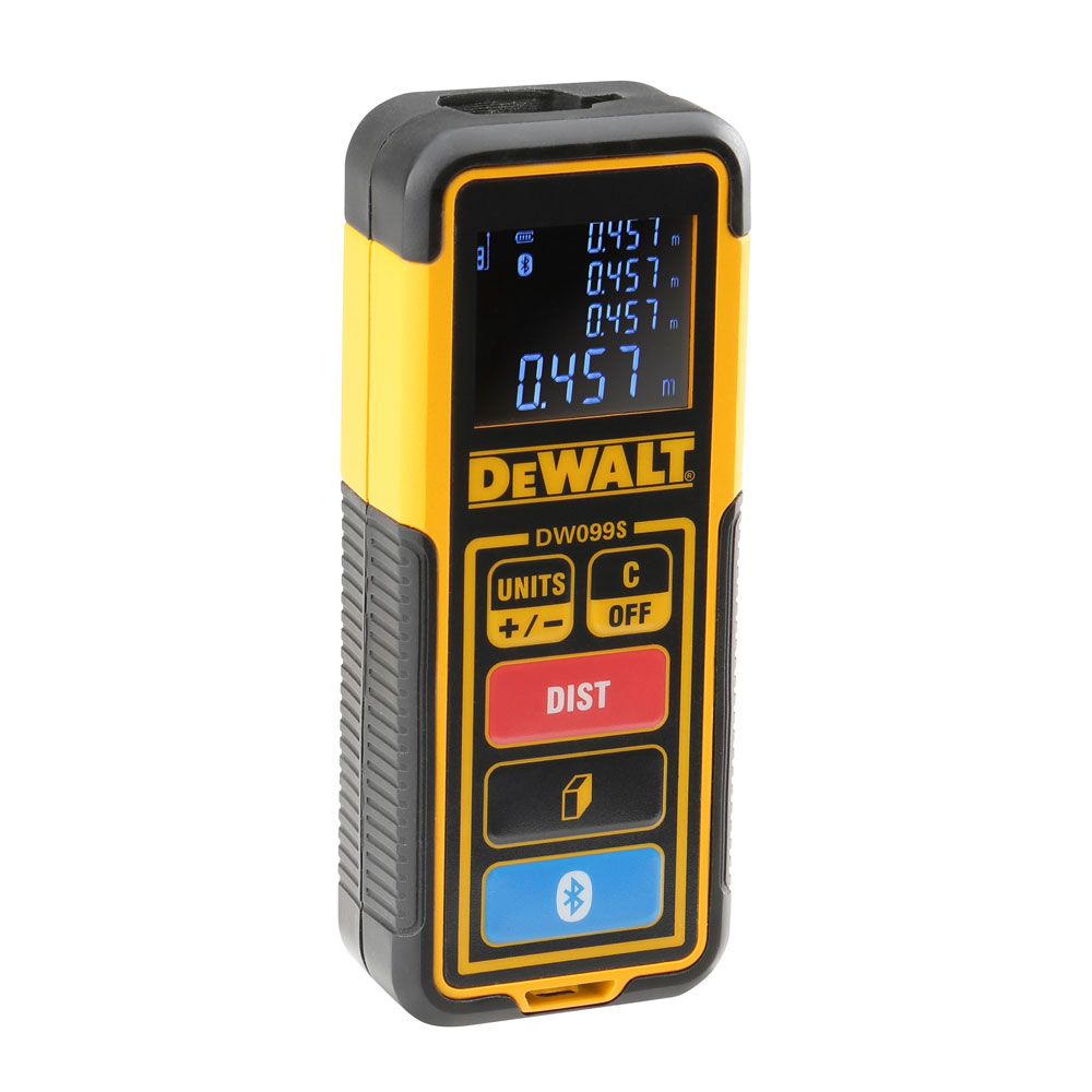 - Το Dewalt DW099S Bluetooth Measure έχει εμβέλεια 30 μέτρων και λειτουργεί σε συνδυασμό με την εφαρμογή Dewalt Measure στο Smartphone σας.