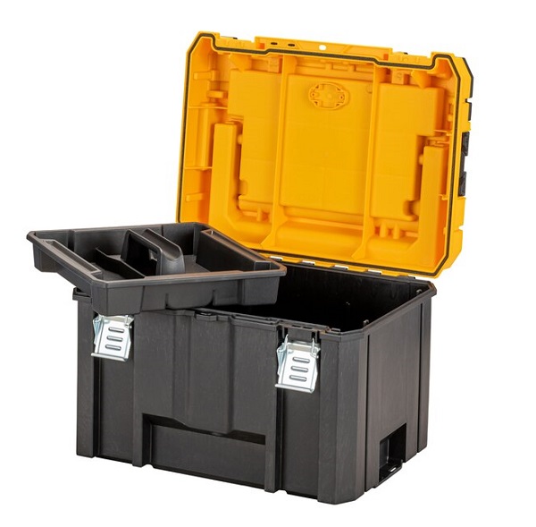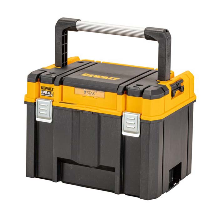 DEWALT - DWST83343-1 TSTAK IP54 Εργαλειοθήκη με Organiser. Κατασκευασμένο και δοκιμασμένο σύμφωνα με τα υψηλότερα πρότυπα για να εξασφαλίσει μεγάλη διάρκεια ζωής και αντοχή, η TSTAK ™ κρατά όλα όσα χρειάζεστε για τη δουλειά που οργανώνεται ακριβώς όπως θέλετε. Μεταλλικά κουμπώματα - αυξάνοντας τη δύναμη, την αντοχή και τη μακροζωία. Κλείδωμα μέσω Λουκέτου (Δεν Περιλαμβάνεται) - Για Πρόσθετη Ασφάλεια. IP54 Water Resistant - Παρέχει προστασία από νερό και σκόνη σε εργαλεία και εξαρτήματα στο εσωτερικό του κουτιού.