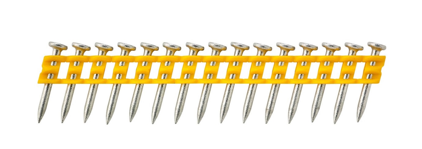 Για ευρύτερο φάσμα εφαρμογών σε σκυρόδεμα. 15 καρφιά ανά δεσμίδα με μηχανικό γαλβάνισμα για εσωτερική & εξωτερική χρήση.
