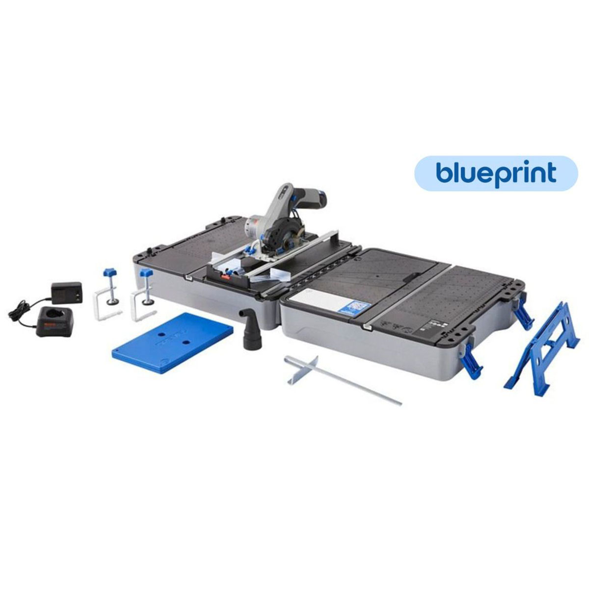 - Από κοπές με λοξοτομή και κωνικές κοπές έως ευθείες κοπές και κοπές με σχισμές, η φορητή βάση πριονιού Blueprintέχει κατασκευαστεί για να κάνει κάθε κοπή εύκολη και απλή.