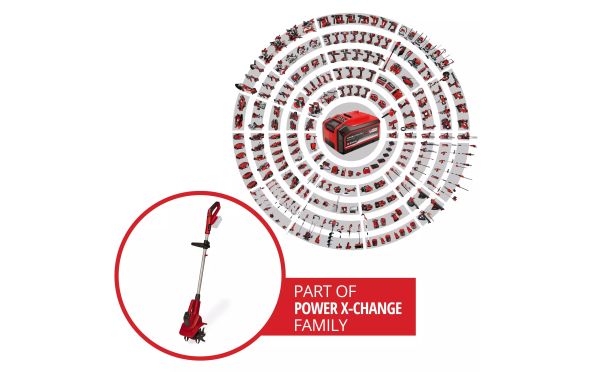 Μέλος της οικογένειας Power X-Change.Η φρέζα οργώματος μπαταρίας Einhell GE-CR 18/20 Li E - Solo προσφέρει ελευθερία καλωδίων για απλό, ελαφρύ σκάλισμα του εδάφους.