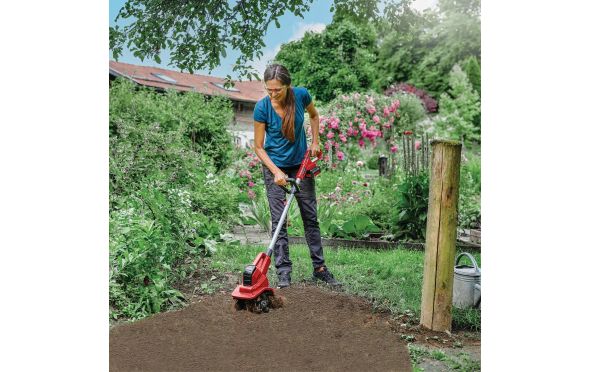 - Η φρέζα οργώματος μπαταρίας Einhell GE-CR 18/20 Li E - Solo προσφέρει ελευθερία καλωδίων για απλό, ελαφρύ σκάλισμα του εδάφους.