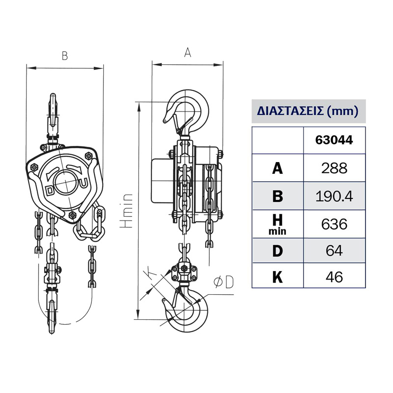 Συμπαγής κατασκευή από χάλυβα υψηλής αντοχής, με 2 σημεία στήριξης του άξονα μετάδοσης κίνησης.Μεγάλη διάμετρος δίσκου τριβής εξασφαλίζει αξιόπιστη πέδηση. Γάντζος ανύψωσης φορτίου από κράμα χάλυβα θερμικής επεξεργασίας με ασφαλιστικό άγκιστρο για μεγαλύτερη ασφάλεια.Εύκολη αλλαγή της αλυσίδας κίνησης και ομαλή λειτουργία.Το κάλυμμα καστάνιας στερεώνεται από τον άξονα μετάδοσης κίνησης και προστατεύει αποτελεσματικά το σύστημα πέδησης.Ενισχυμένος άξονας κίνησης υψηλής ακρίβειας και θερμικής επεξεργασίας.Αλυσίδα φορτίου από κράμα χάλυβα G80 σύμφωνα με το ISO 16877.