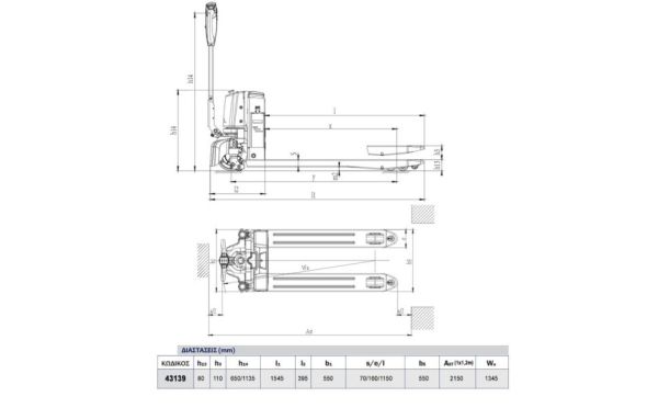 | Διαστάσεις Πιρουνιών s/e/I (mm): 70 / 160 / 1150 |