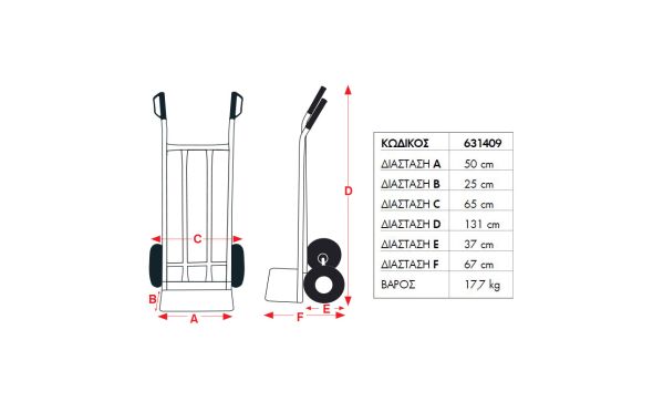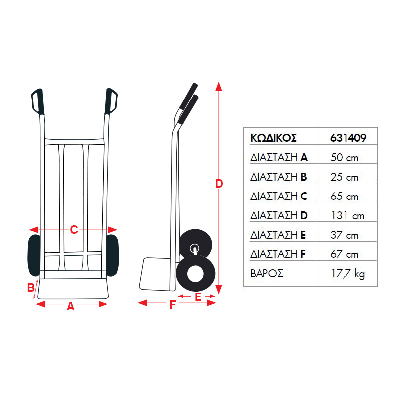Μεταλλικό Καρότσι Μεταφοράς, Ικανότητας 250kg, με Συμπαγείς τροχούς, Κατάλληλο για Μεταφορά Φορτίου σε Σκάλες.