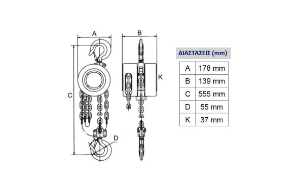 Παλάγκο αλυσίδας χειρός με Ικανότητα Ανύψωσης 3 Ton. / 3 m Συμπαγής Κατασκευή με Αλυσίδα από Χάλυβα