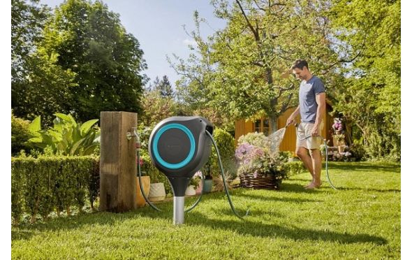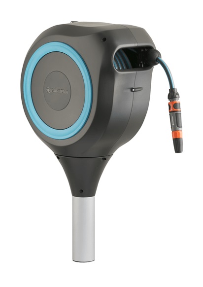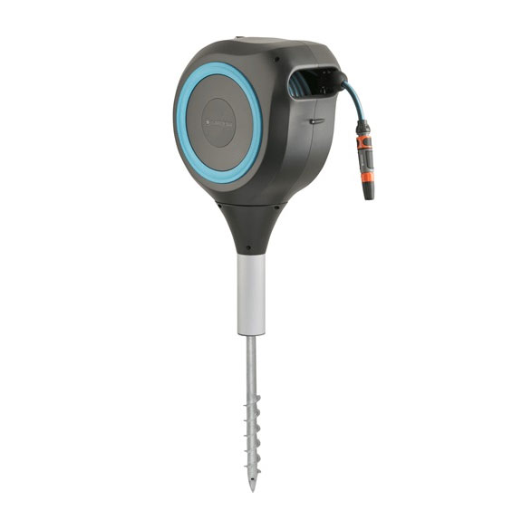 • Επιπλέον, αυτό το καρούλι λάστιχου σας σώζει από την κουραστική συστροφή, τη κύλιση και τα βρώμικα χέρια:Ένα σύντομο τράβηγμα στο άκρο του λάστιχου απελευθερώνει την κλειδαριά και ένα ενσωματωμένο χαλύβδινο ελατήριο φέρνει πίσω το λάστιχο του κήπου πλήρως αυτόματα και αξιόπιστα.