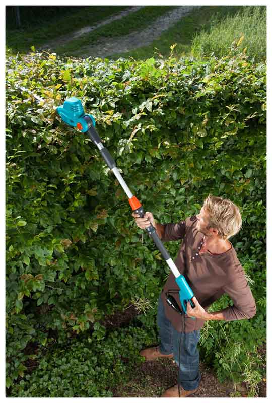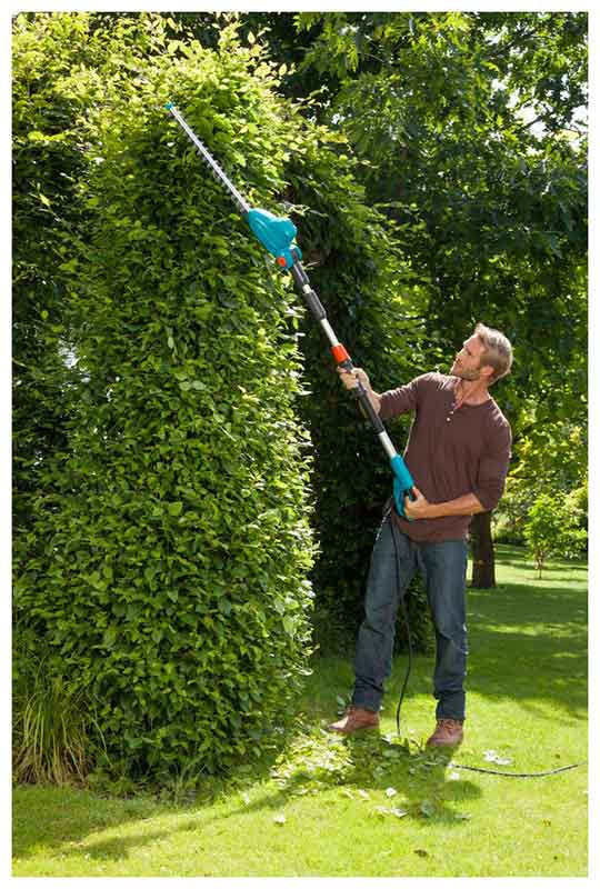 Τηλεσκοπικό μπορντουροψάλιδο Gardena με εργονομική λαβή. Με τηλεσκοπική ρύθμιση για κοπή σε υψηλούς φράκτες Η γωνία της κεφαλής μπορεί να ρυθμιστεί για την άνετη κοπή της επάνω επιφάνειας των υψηλών φρακτών αλλά και των χαμηλών φυτών στην επιφάνεια του εδάφους Φτάνει σε ύψος περίπου 3,5m Μαχαίρια κομμένα με λέιζερ για δυνατή και καθερή κοπή χωρίς διακοπές Προστατευτικό άκρο που προστατεύει τη λεπίδα απο χτυπήματα οταν κόβει κοντά στο έδαφος