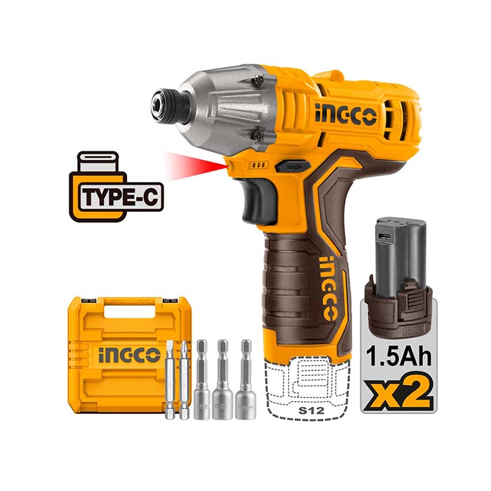 INGCO - CIRLI12015 Παλμικό Κατσαβίδι Μπαταρίας 12V Li-Ion με Φόρτιση USB Type-C (2x1.5Ah)