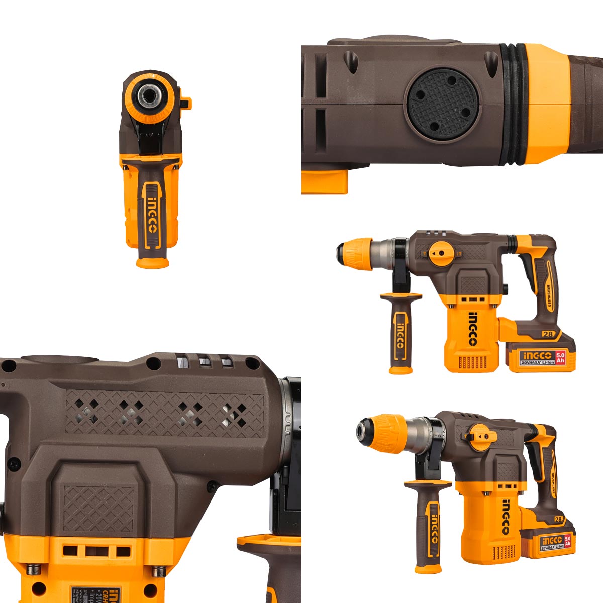 Ingco - CRHLI202862E Περιστροφικό Κρουστικό Σκαπτικό Μπαταρίας SDS-Plus 20V Li-Ion Brushless 4.5J - (2x5.0Ah)