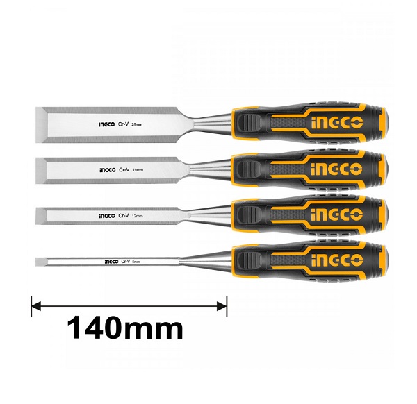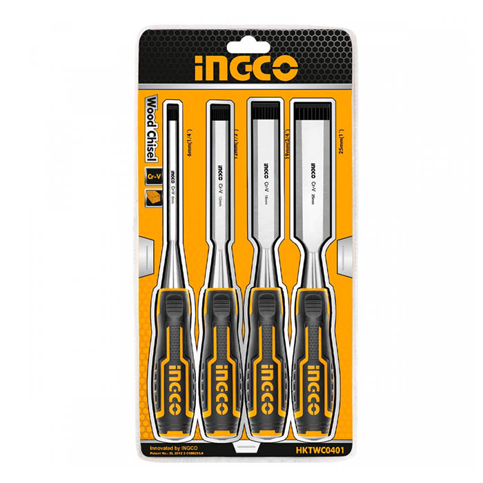 INGCO - HKTWC0401 Σετ Σκαρπέλα 4 Τεμαχίων. Ατσάλινο άκρο στη λαβή που μπορεί να χρησιμοποιηθεί με σφυρί για αύξηση της δύναμης κρούσης. Εργονομική λαβή. Υλικό Cr-V