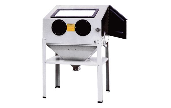 Ενισχυμένη καμπίνα αμμοβολής 220 Lt με πλαϊνό πορτάκι και εσωτερικό φωτισμό.