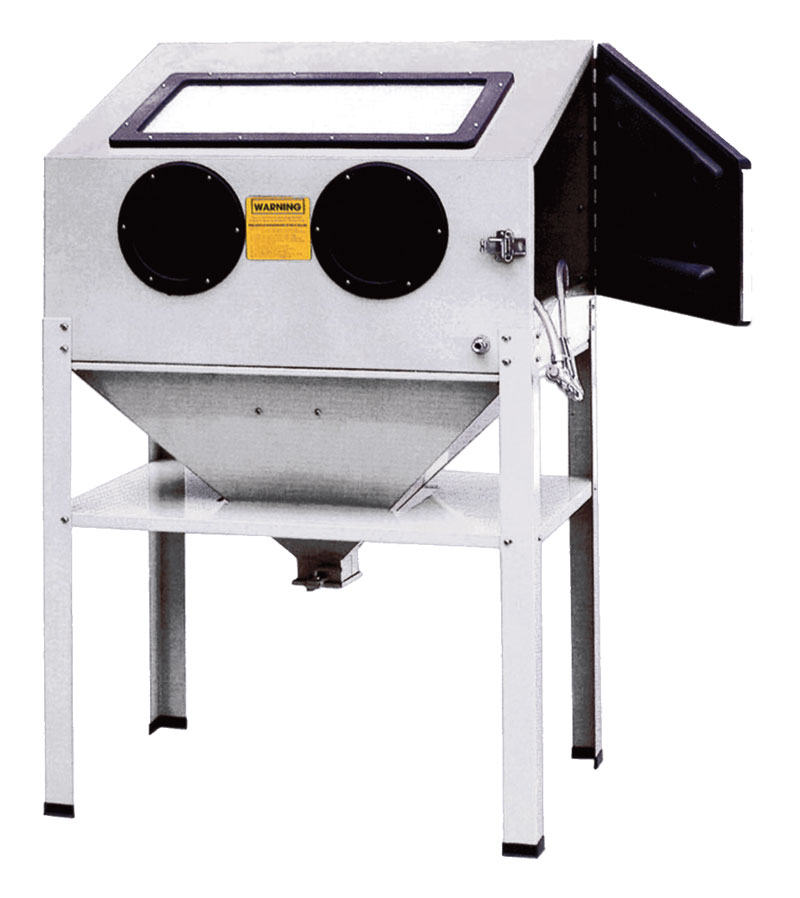 - Ενισχυμένη καμπίνα αμμοβολής 220 Lt με πλαϊνό πορτάκι και εσωτερικό φωτισμό.