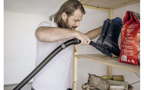 • Η σκούπα υγρής και ξηρής αναρρόφησης εντυπωσιάζει με τη συμπαγή σχεδίασή της και ένα στιβαρό πλαστικό κάδο 17 λίτρων, καλώδιο 4 μέτρων, σωλήνα αναρρόφησης 2 μέτρων και τη σακούλα φίλτρου fleece.