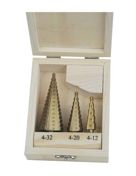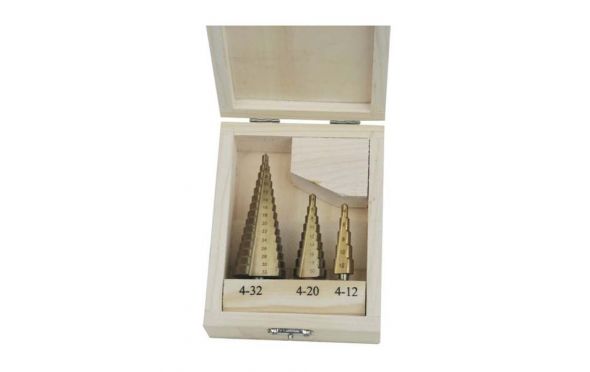 MANNESMANN - 54603 Σετ Τρυπάνια Κωνικά Τιτανίου 3 Τεμ σε Ξύλινη κασετίνα Κατάλληλο για ξύλο, πλαστικό, μέταλλο, αλουμίνιο (εκτός από ανοξείδωτο).