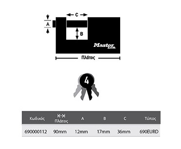 Master Lock - 690EURD Λουκέτο Τάκος Επινικελωμένος 90mm με Ατσάλινο Λαιμό