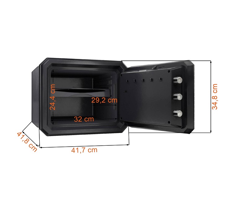 - Προστατεύει τα πολύτιμα αντικείμενα σας, κοσμήματα, χρήματα, ηλεκτρονικά είδη, έγγραφα (μέγεθος Α4), από κλοπή, πυρκαγιά και πλημμύρες.