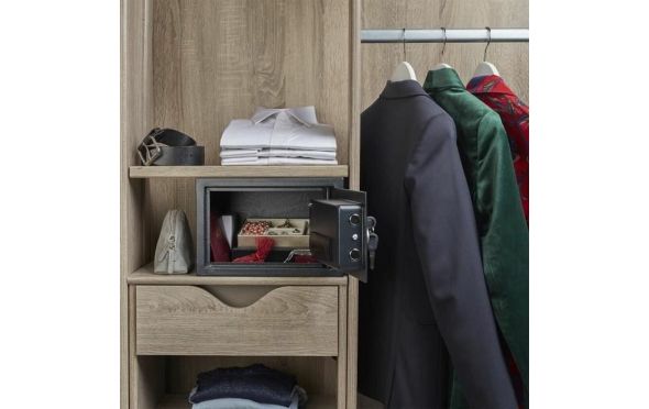 • Η προγραμματιζόμενη ηλεκτρονική κλειδαριά ασφαλείας σάς επιτρέπει να επιλέξετε τον συνδυασμό σας, ενώ το έξτρα κλειδί διασφαλίζει ότι θα έχετε πάντα πρόσβαση στο χρηματοκιβώτιο σας, ακόμα και στην περίπτωση που ξεχάσετε τον συνδυασμό.