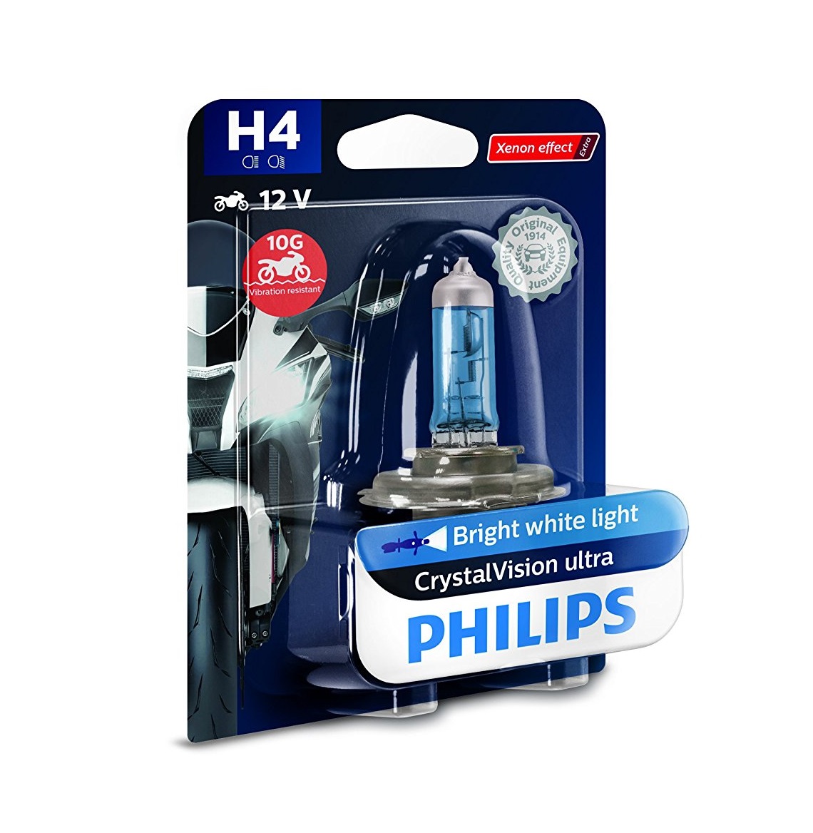 • Οι Philips CrystalVision Ultra Moto προσφέρουν φωτεινό λευκό φως, με εφέ τύπου Xenon μέχρι 4000Κ (ανάλογα τον τύπο λάμπας). Χάρη στην υψηλή τεχνολογία και στην αποτελεσματικότητα, διαφοροποιείτε τη μηχανή σας με καλύτερη ορατότητα και άνεση!