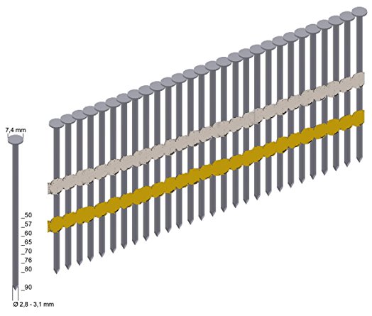 | Πρόκα με στρογγυλό κεφάλι σε δεσμίδα με πλαστική σύνδεση |
