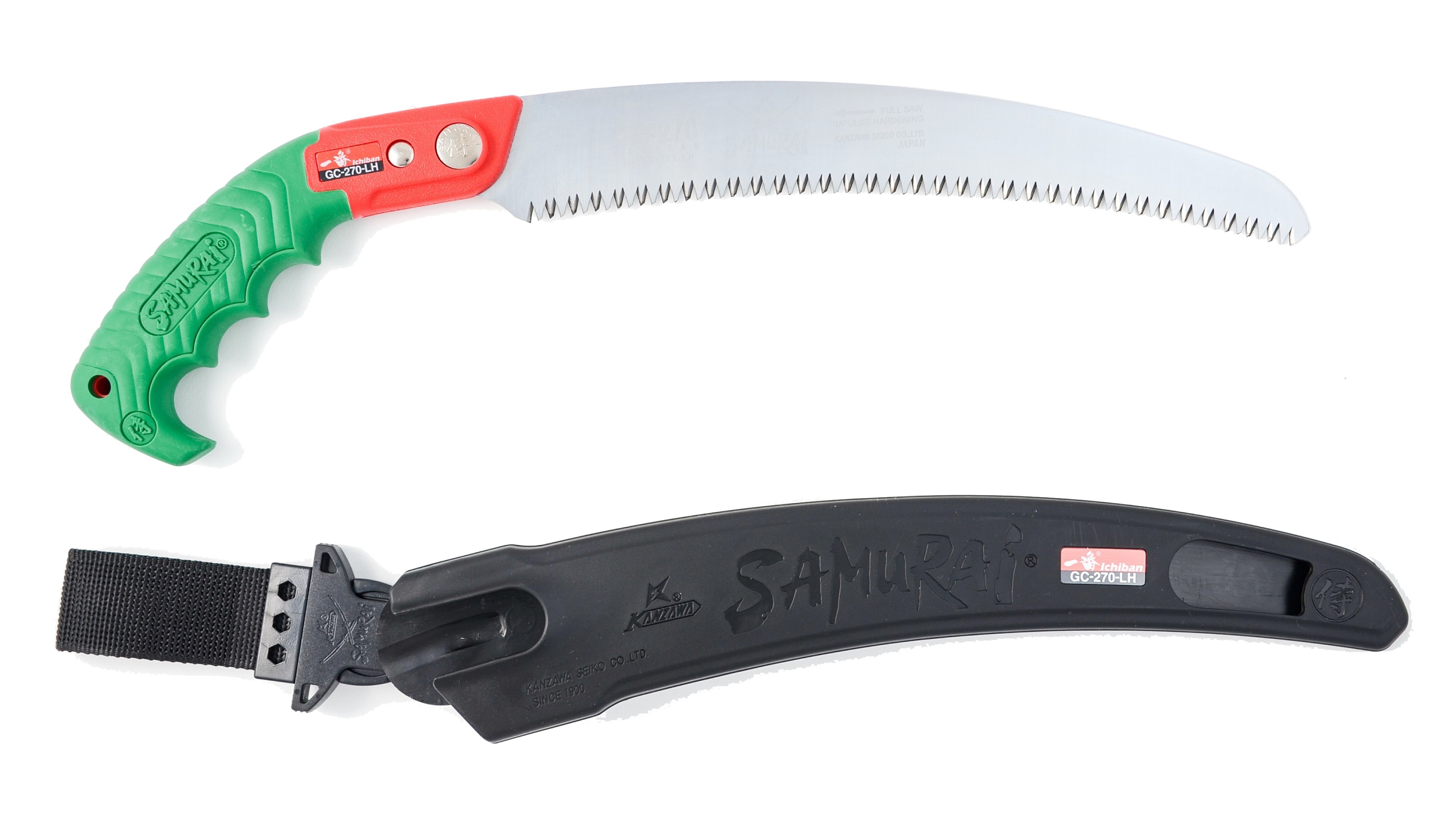 Σταθερό χειροπρίονο SAMURAI GC 270 LH με κυρτή λάμα 27 cm και θήκη. Η σειρά χειροπριόνων SAMURAI GC-Series, με κυρτή λάμα τριπλής οδόντωσης, αποτελεί πατέντα της Kanzawa και επιτρέπει στον χρήστη να χρησιμοποιεί το ίδιο αποτελεσματικά όλο το μήκος της λάμας (από την χειρολαβή έως και το άκρο της μύτης). Με τον τρόπο αυτό απαιτείται πολύ λιγότερος χρόνος και πολύ μικρότερη προσπάθεια για την επίτευξη των ίδιων αποτελεσμάτων.