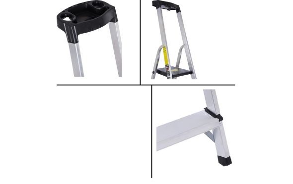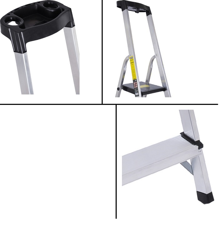 Προφίλ αλουμινίου (46Χ20mm) μέγιστης αντοχής 1,2mm & ελαφριές στην χρήση. Ενισχυμένη εργαλειοθήκη από πολυαιθυλένιο για πολλαπλές χρήσεις. Σύστημα κλειδώματος πλατύσκαλου μέγεθος (25Χ25cm) βαμμένο ηλεκτροστατικά RAL9005. Διαγραμμισμένα σκαλοπάτια αλουμινίου 8cm με πάχος 1,2mm για ασφαλές πάτημα. Μεταλλικές αντηρίδες για επιπλέον ενίσχυση στη βάση της σκάλας. Η σκάλα παρέχει όλες τις ευρωπαϊκές προδιαγραφές ΕΝ131 (ΤUV). Μέγιστη αντοχή 150 kg και εργοστασιακή εγγύηση καλής λειτουργίας 2 χρόνια από palbest.