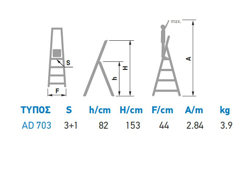 • Διαγραμμισμένα σκαλοπάτια αλουμινίου 8cm με πάχος 1,2mm για ασφαλές πάτημα.