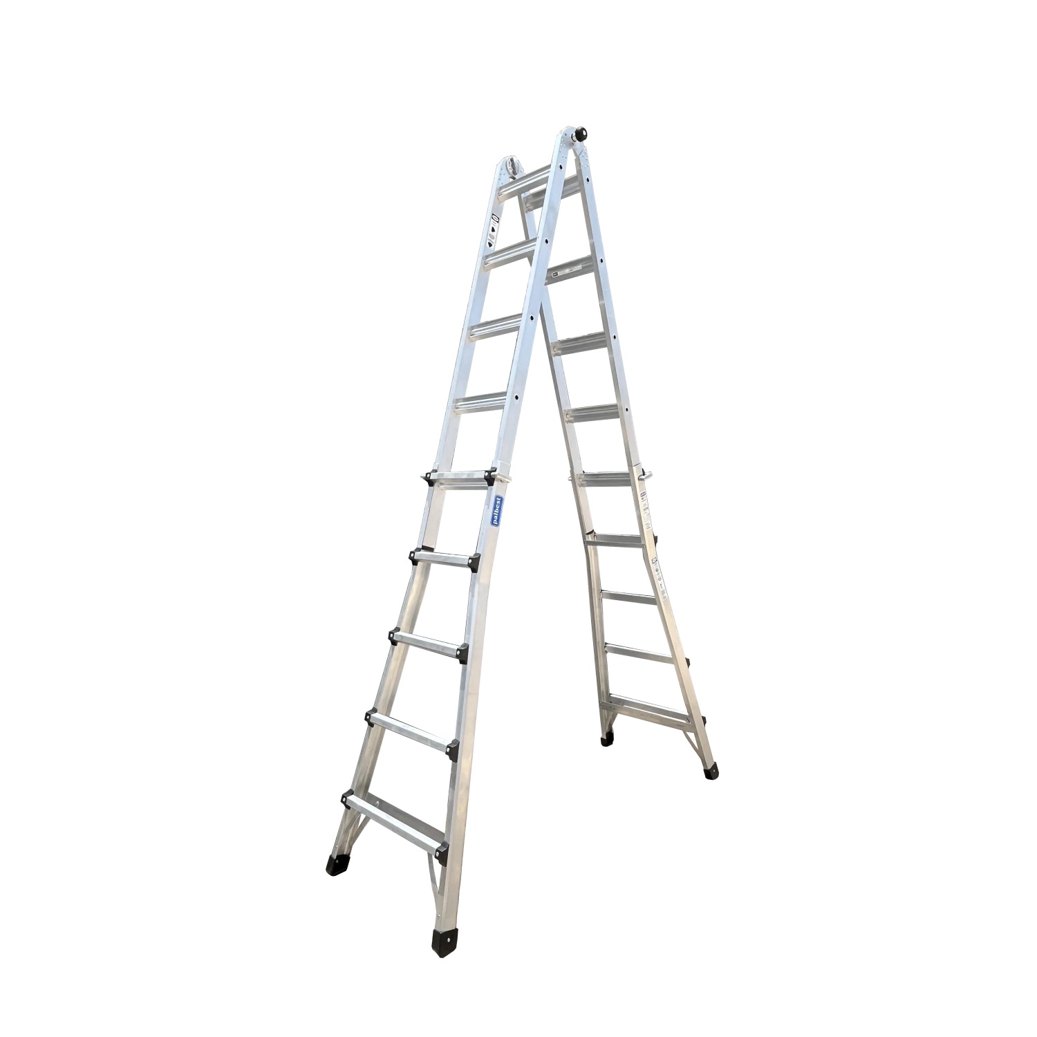 Σκάλα αλουμινίου με 2 αυτόματες ασφάλειες.Δυνατότητα σκάλας να διαμορφώνεται σε 5 διαφορετικές θέσεις κλειδώματος.Χρήση σε ανισόπεδο.Εύκολη στην μεταφορά και αποθήκευση λόγο μεγέθους.Η σκάλα παρέχει όλες τις ευρωπαϊκές προδιάγραφες ΕΝ131 Μέγιστη αντοχή 150kg.