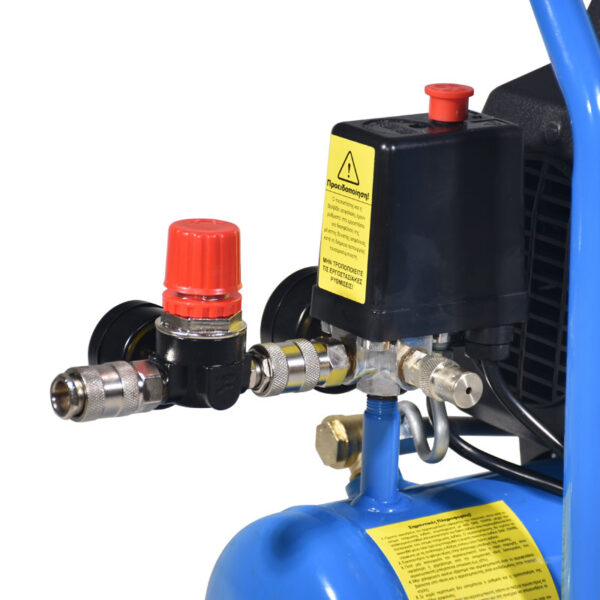Αεροσυμπιεστής με ελαιολίπαντη κεφαλή (λιγότερες φθορές, μεγαλύτερη διάρκεια ζωής), μοτέρ INDUCTION (χωρίς ψύκτρες), είναι κατάλληλος τόσο για ερασιτεχνικές όσο και για ορισμένες ημιεπαγγελματικές εφαρμογές. Οι αεροσυμπιεστές στα πλαίσια διασφάλισης ποιότητας και ελέγχου ενδέχεται να περιέχουν λάδια. Πριν την πρώτη χρήση ελέγξτε μέσω της γυάλινης ένδειξης στάθμης για την ύπαρξη ή μη λαδιού στο χώρο κάρτερ του αεροσυμπιεστή, σε διαφορετική περίπτωση προσθέστε λάδι μέχρι την μέση της ένδειξης στάθμης λαδιού.