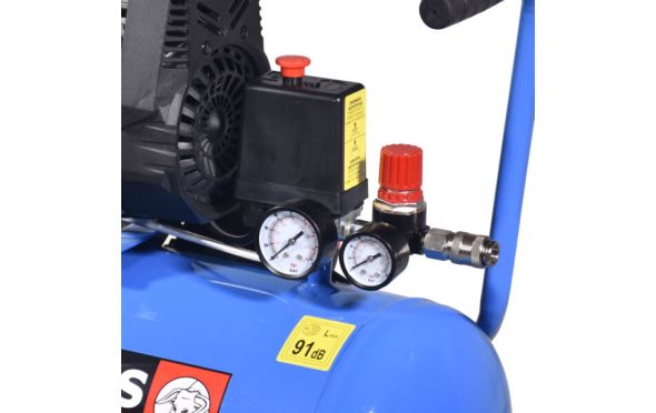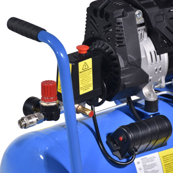 Αεροσυμπιεστής με μοτέρ ΕΠΑΓΩΓΙΚΟ με πυκνωτη 30μF και θερμικό με μπουτόν 8Α.Semi - SILENT (Χαμηλής στάθμης θορύβου.Κεφαλή OIL FREE (χωρίς λάδι).Προρυθμισμένος για λειτουργία από 6 έως 8 Bar για καλύτερη απόδοση και μεγαλύτερη αντοχή στον χρόνο.Δυνατότητα ρύθμισης λειτουργίας έως 10 Bar.