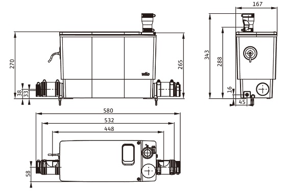 Συμπαγής και έτοιμη για σύνδεση μονάδα άντλησης λυμάτων για την αποστράγγιση νιπτήρων, ντουζιέρας και μπανιέρας.Για την συλλογή και την άντληση σε οικιακές περιοχές: Λυμάτων χωρίς αποχωρήματα.Η μονάδα άντλησης λυμάτων ικανοποιεί τις απαιτήσεις κατά EN 12050-2.Συμπαγής, έτοιμη για σύνδεση και πλήρως εμβαπτιζόμενη μονάδα άντλησης λυμάτων με υποβρύχια αντλία. Η καταγραφή στάθμης εξασφαλίζεται με έναν κατακόρυφο πλωτηροδιακόπτη. Η εξαέρωση είναι ενσωματωμένη στο καπάκι και διαθέτει φίλτρο ενεργού άνθρακα.